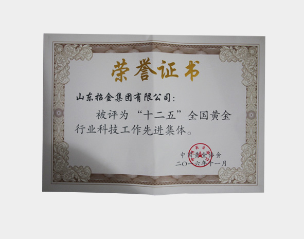 • “十二五”期間中國黃金行業(yè)思想政治工作先進(jìn)集體榮譽(yù)稱號(hào)