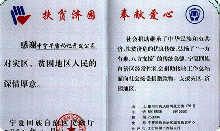 早康枸杞繼捐贈價值36萬元物資后,又捐10萬現(xiàn)金。