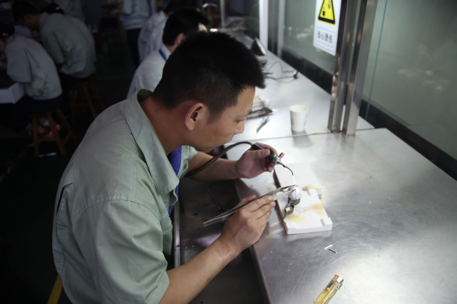 據(jù)了解,本次競賽分為理論知識和實際操作兩項內(nèi)容,競賽方案由有關(guān)專家在國家高級工職業(yè)標準(行業(yè)標準)范圍內(nèi)命題,并報煙臺市競賽組委會辦公室審核制定。競賽期間,參賽選手各自展現(xiàn)高超技藝,在規(guī)定時間根據(jù)競賽要求對首飾作品進行銼、打砂紙、焊接等執(zhí)模操作,以使提供的材料加工后能呈現(xiàn)為標本所示的版型。