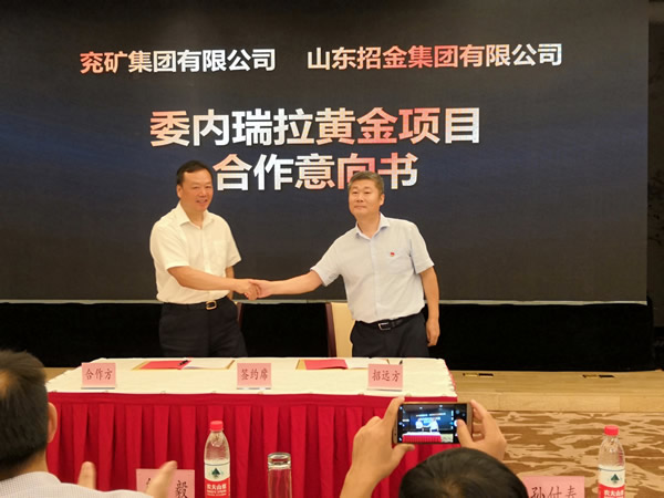 山東招金集團(tuán)有限公司副總經(jīng)理時(shí)文革與兗礦集團(tuán)有限公司拉美公司副總經(jīng)理左廣斌簽約