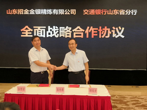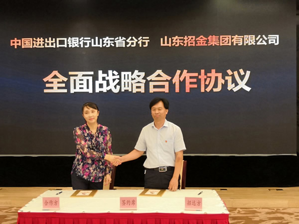 山東招金集團(tuán)有限公司劉永勝總經(jīng)理與進(jìn)出口銀行山東省分行王宇輝副行長(zhǎng)簽約