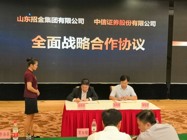 山東招金集團(tuán)有限公司劉永勝總經(jīng)理與中信證券股份有限公司楊明輝總經(jīng)理簽約
