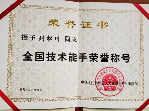 招金職工榮獲“全國技術(shù)能手”榮譽稱號