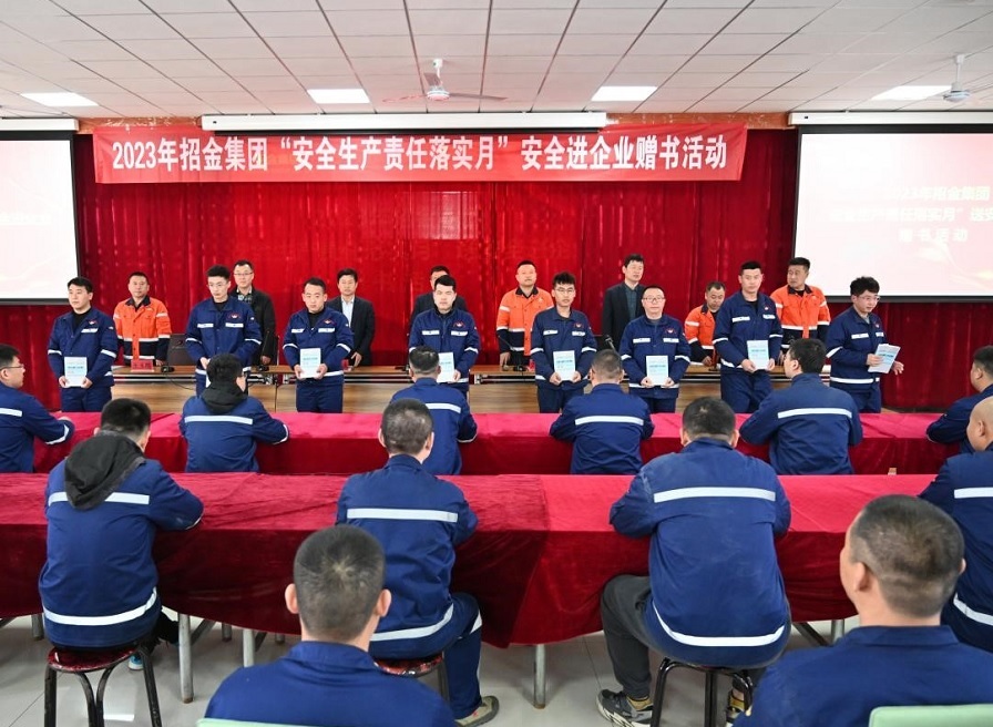 2023年3月29日,山東招金集團(tuán)有限公司安委會(huì)在夏甸金礦組織召開“送安全進(jìn)企業(yè)”贈(zèng)書活動(dòng)。