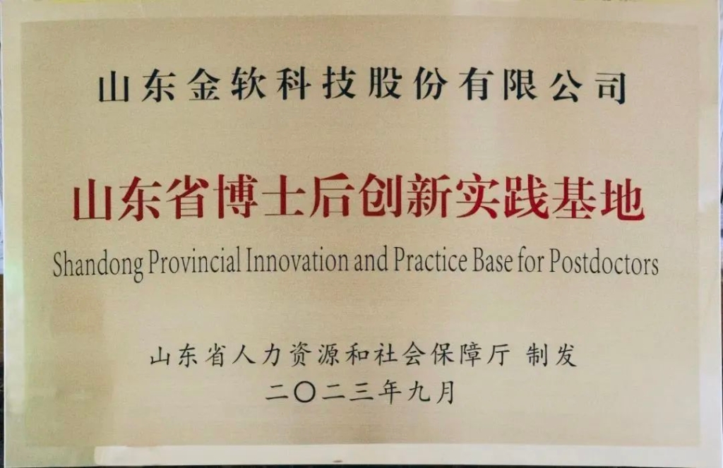 近日,山東省人力資源和社會保障廳公布第九批(2023年)山東省博士后創(chuàng)新實踐基地認(rèn)定名單,金軟科技憑借在科技研發(fā)、管理創(chuàng)新、人才引進等方面的顯著成果,成功獲批入選成為山東省博士后創(chuàng)新實踐基地。