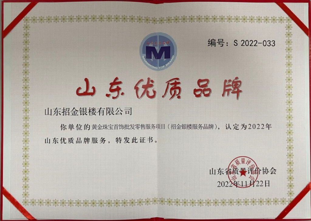 招金銀樓憑借出色的服務(wù)能力和品牌實力再次成功入選“2022年山東優(yōu)質(zhì)品牌服務(wù)”名單。