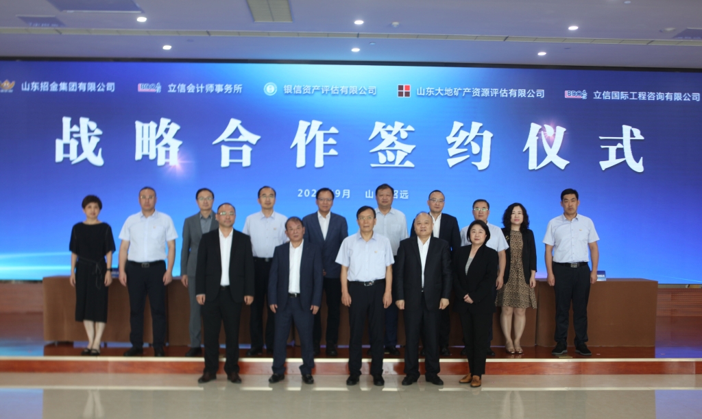 9月10日上午,山東招金集團(tuán)有限公司與立信會(huì)計(jì)師事務(wù)所、銀信資產(chǎn)評(píng)估有限公司、山東大地礦產(chǎn)資源評(píng)估有限公司、立信國(guó)際工程咨詢有限公司在招金大廈舉行戰(zhàn)略合作簽約儀式。簽約儀式前,有關(guān)各方就全面加強(qiáng)合作進(jìn)行座談。