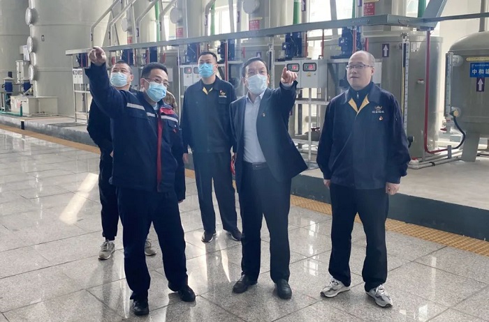 2月19日,招金集團黨委副書記、總經(jīng)理王樂譯深入招金膜天調(diào)研。 王樂譯總經(jīng)理來到生產(chǎn)車間,現(xiàn)場查看了生產(chǎn)