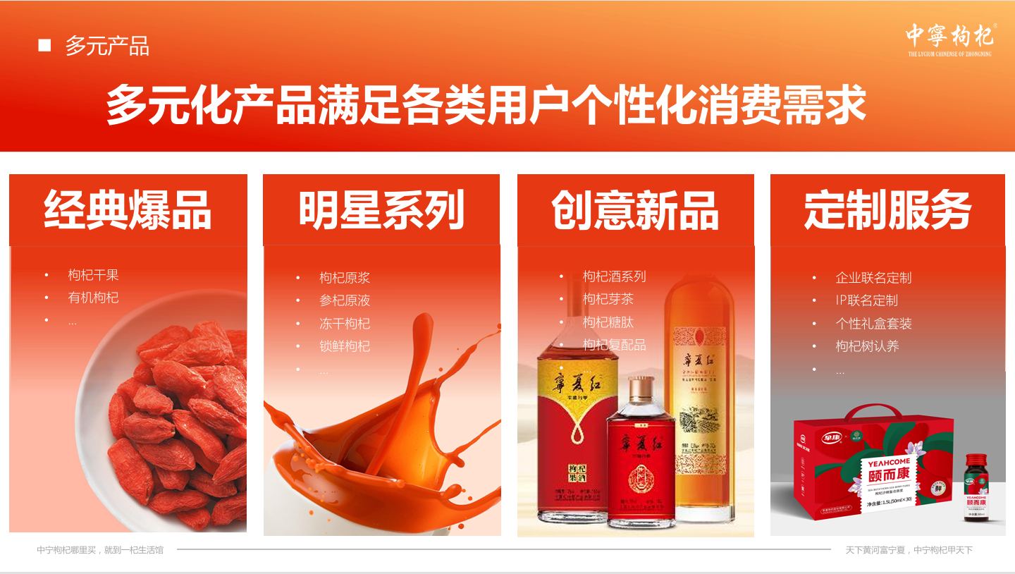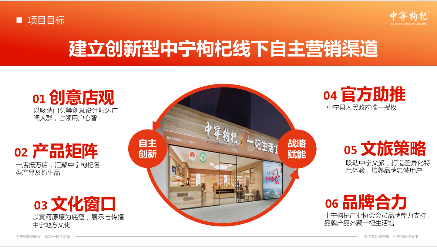 【中寧枸杞·一杞生活館】產品包含中寧枸杞全品類系列,作為現(xiàn)代人日常生 活的輕養(yǎng)食品進入每一個家庭?!局袑庤坭健ひ昏缴铕^】秉持“ 讓真正的中寧枸杞走進千家萬戶” 的核心使 命,重塑線下消費體驗,邁向全國市場。突破地域限制,打破傳統(tǒng)特產店形 式,融入時代特色,革新傳統(tǒng)空間形態(tài)。打造集健康養(yǎng)生、文化體驗與時尚 消費于一體的新時代健康生活方式體驗館。